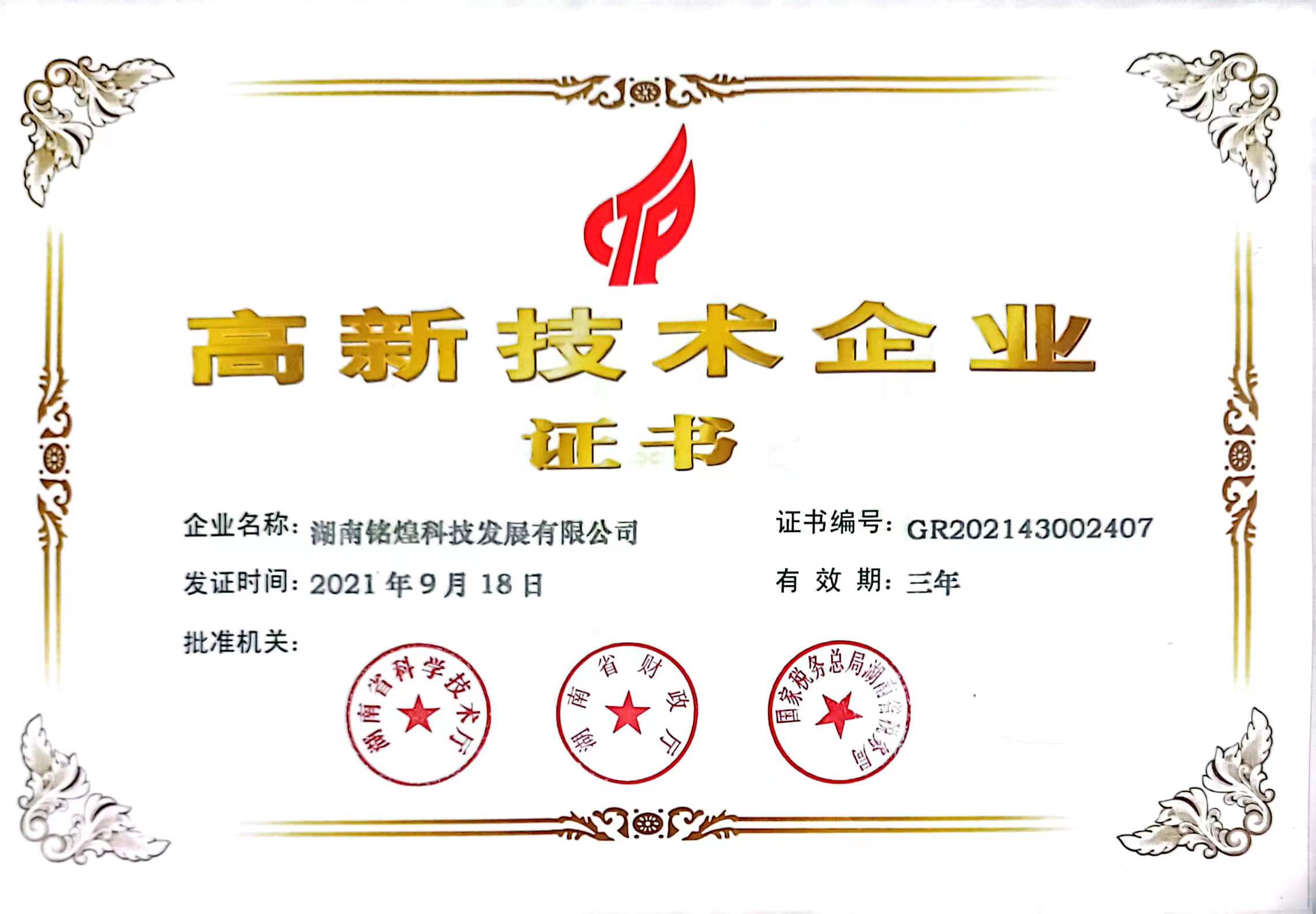 高新技術(shù)企業(yè)證書 企業(yè)信用等級證書 湖南省專精特新中小企業(yè)